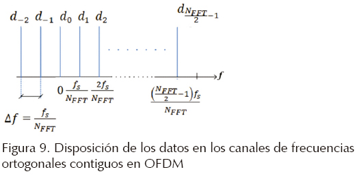 En la figura 9 se puede observar la disposición de las subportadoras dentro de un rango de frecuencias. La disposición de las subportadoras, se encuentra en el rango