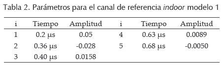 Para el modelo indoor se tienen 4 tipos de canal de referencia, los cuales tienen como principales características las mostradas en la tabla 1.