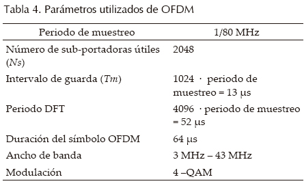 Adicionalmente, en el estudio se toma en cuenta el uso de una multiplexación ortogonal por división en frecuencia (Orthogonal Frequency División Multiplexing), la cual ha demostrado su robustez en relación con el ruido, al sacar ventaja de su propiedad de ortogonalidad.