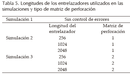 En la tabla 5, se muestran las longitudes de los entrelazadores utilizados en las simulaciones, así como el tipo de matriz de perforación utilizada.