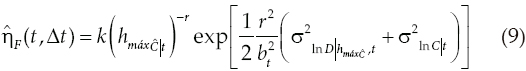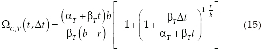 La ecuación anterior sirve para evaluar el factor de confianza al final del intervalo [t, t + Δt) cuando únicamente se considera la variación de la demanda estructural (para una intensidad dada) con el tiempo.