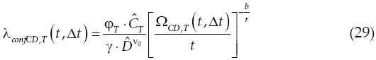 donde λconfCD,T (t, Δt) permite evaluar al final de un intervalo de tiempo, el factor de confianza cuando se considera simultáneamente la variación en el tiempo de la capacidad y de la demanda estructural, para cierto nivel de intensidad.
