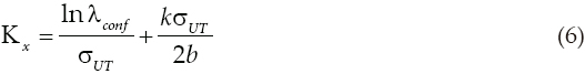 donde Kx es la variable Gaussiana estandarizada con probabilidad x de no ser excedida, por lo que x indica el grado de confianza,