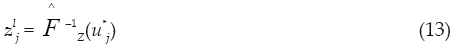 10 ) Obtener el valor simulado Zlj para cada ubicación j de la realización l empleando la función de distribución marginal empírica: