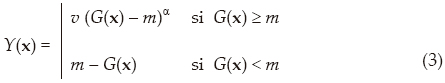 donde v es una constante positiva y m y α son reales. Cuando v = 1 y α = 1, se obtiene la distribución X2 no centrada multivariada para ϒ(x). Además, el efecto no lineal de la transformación desaparece cuando m → ± ∞ y la cópula resultante converge a la cópula gaussiana.