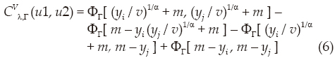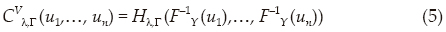 La cópula V-transformada multivariada con parámetros λ = {v, m, α} se puede escribir entonces como: