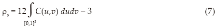 Cada coeficiente ρ de la cópula bivariada C(u,v) se puede relacionar con una distancia en el correlograma de G(x). Entonces, obteniendo ρS para diferentes ρ, la curva ρS-ρ se puede utilizar para determinar una función de correlación prescrita para ϒ(x), a partir de un modelo de correlación apropiado para G(x). El procedimiento se puede resumir como sigue: