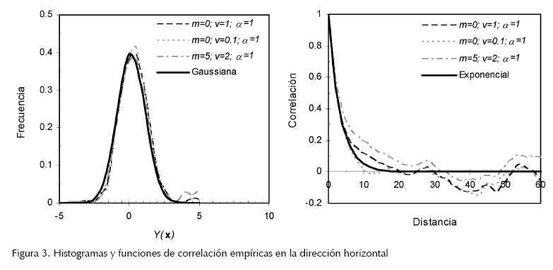 Cabe mencionar que la función de correlación prescrita para ϒ(x) se logra como un promedio de un conjunto de realizaciones y que esta curva suele ser el mejor ajuste por mínimos cuadrados.