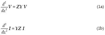 where Z and ϒ are the series-impedance and the shunt-admittance matrices both in per unit length, respectively. The solution of (1a) and (1b) is (Wedepohl and Wilcox, 1973; Dommel, 1986; Marti, 1982; Marti, 1988; Uribe et al., 2002; Schellkunoff, 1934):