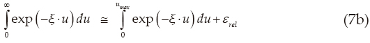 The truncation criterion for (7a) is based on the properties of the damping exponential factor in (6a) when F(u ) → u. Thus, for the second factor in (6a) the entire range of u can be split-up into: