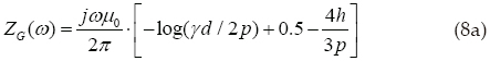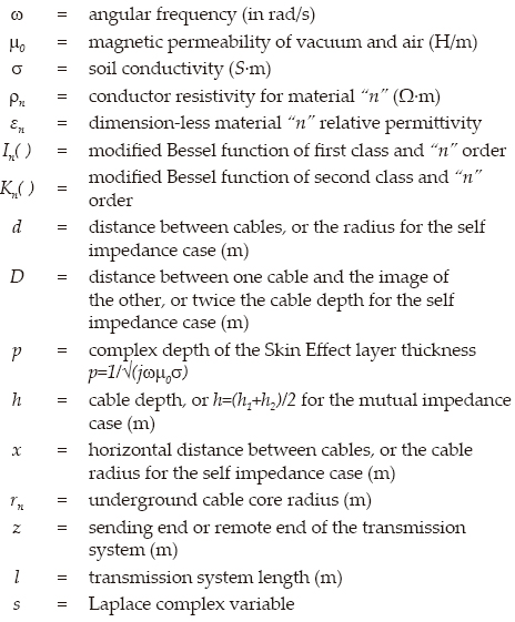 Wedepohl and Wilcox (1993) presented a formula for calculating the self and mutual ZG(ω) valid for cables buried at usual depths around h ≤ 1 m, d ≤ 1 m and |x/p| < 1/4: