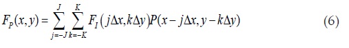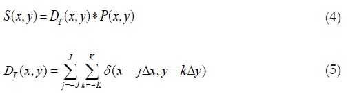 and is comprised of (2J +1) (2K +1) identical pulses P(x, y) arranged in a grid spacing (dx, dy). Symmetrical limits of summation are chosen, for notational simplicity, we assume that the sampling points are scaled.