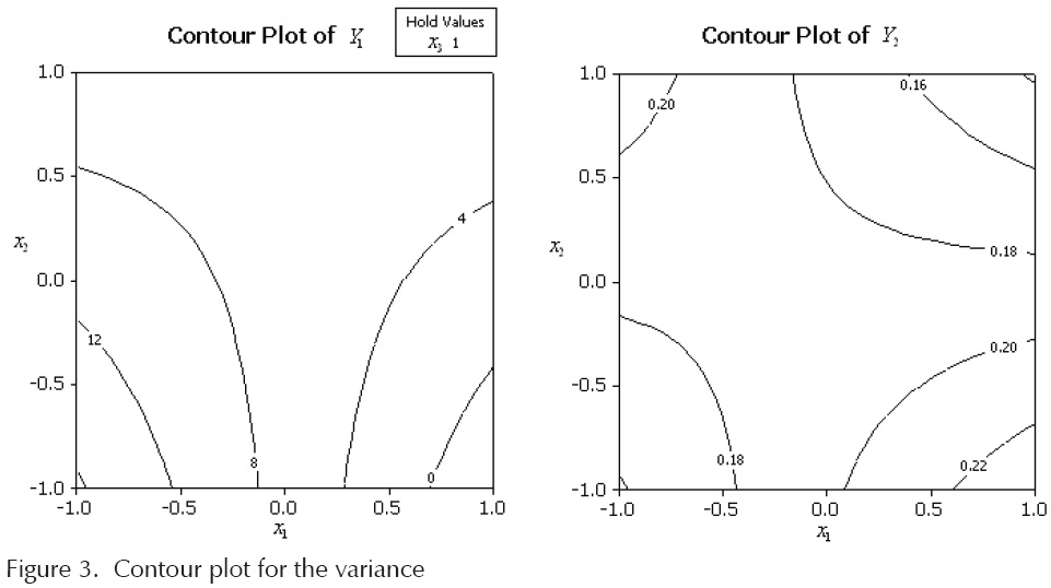 In this investigation we propose an optimization procedure to find the best conditions for the average with the lowest variance. This approach leads to the technique known as dual response (Tang and Xu, 2002; Koksoy and Doganaksoy, 2003). Our interest in the experimental analysis is to determine whether there is an interaction effect between the control factors and the noise factor. Several authors have worked on this approach, including Montgomery (2004), Tang and Xu (2002), Myers and Montgomery (2002). The proposed model can be expressed by: