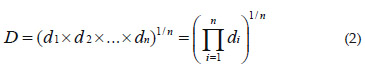 El software Design Expert basa su optimización numérica en la función de deseabilidad. La deseabilidad general (D) es la media geométrica (multiplicativa) de todos las deseabilidades individuales (di) en un rango de 0 (mínimo) a 1 (máximo) (Myers y Montgomery, 2002).