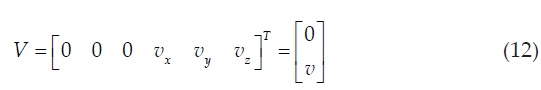 De lo anterior, el estado de velocidad V de la base móvil se puede expresar en forma de tornillo de la siguiente manera