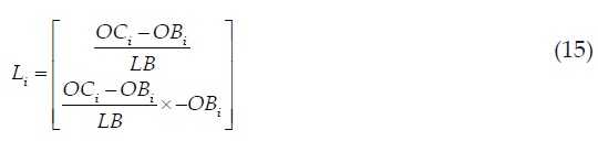 La línea Li es reciproca a todos los tornillos de la misma cadena cinemática, excepto al tornillo asociado a la articulación virtual y a la articulación de revoluta activa, por lo tanto, la aplicación de la forma de Klein, la cual se denota por {*;*}, de la línea Li a ambos lados de la ecuación (13), permite, con la reducción de términos, llegar a la siguiente ecuación