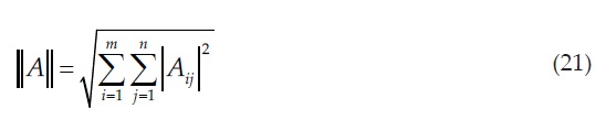 es la norma de la matriz correspondiente, la cual, tal y como se puntualiza en Moreno et al. (2012), corresponde a la norma de Frobenius, definida en forma general a través de la siguiente expresión