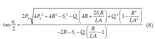 Sustituyendo (2) y (7) en la ecuación vectorial (5) se puede encontrar una expresión para qi como se muestra a continuación