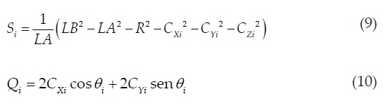 Posteriormente, para calcular CX1, CY1, CZ1 debemos considerar las tres ecuaciones generadas, para i = 1, 2, 3, por la siguiente relación