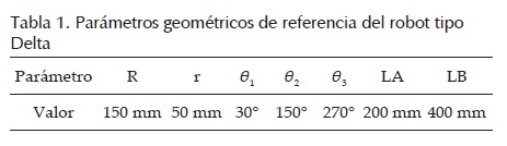 Para evaluar la reconfiguración geométrica del robot tipo Delta y el efecto en su desempeño cinetostático, es necesario definir una línea base, es decir, determinar valores de referencia para cada uno de los parámetros que definen la geometría del robot y que se presentan en la tabla 1.
