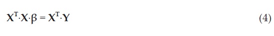 En la ecuación anterior, XT es la matriz transpuesta de X y (XT·X)1 es la matriz inversa de XT· X.