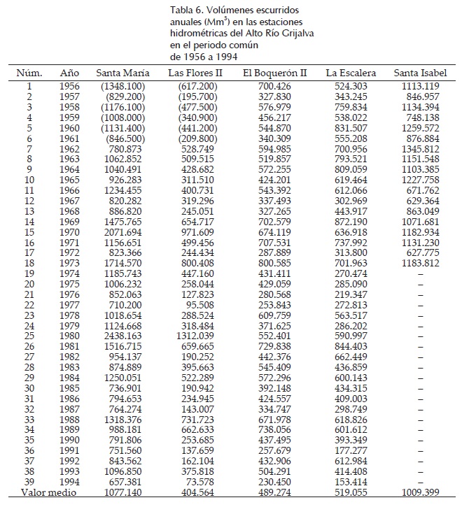 Otra ventaja del procedimiento descrito, consiste en obtener de forma simultánea todos los datos anuales faltantes en los registros procesados, con lo cual queda integrado un grupo de series de datos hidrológicos en un periodo común. Esto permite aplicar técnicas hidrológicas de simulación de aprovechamientos hidráulicos o de estimación regional de crecientes, que requieren muestras que tienen un lapso común de registro.