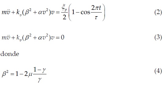 Así, la ecuación se representa de manera genérica donde la respuesta del sistema está dada por ν, y ξ representa la entrada o excitación, donde ambas son funciones del tiempo. La respuesta de impacto del sistema depende principalmente de la duración de la excitación impulsiva τ, concretamente de su relación con el periodo natural del sistema T, es decir, τ/T, y de la forma del pulso aplicado. Para el caso de un sistema sujeto a impacto, la respuesta se divide en dos etapas, vibración forzada durante el pulso y vibración residual a la frecuencia natural del sistema una vez que el impacto ha terminado. Se define la respuesta máxima x como la máxima respuesta que ocurre en cualquier instante (puede ocurrir durante o después del impacto), la respuesta residual que ocurre después del impacto y la respuesta relativa, que es la diferencia entre la amplitud de entrada y salida. Esta última respuesta es de gran importancia, ya que representa la deformación en el elemento elástico y se relaciona con el espacio disponible para el aislante. Los parámetros que se usan para evaluar la severidad del impacto suelen ser la máxima aceleración transmitida y el máximo desplazamiento relativo, relacionados con las fuerzas y deformaciones, respectivamente (Snowdon, 1968; Lalanne, 2002).