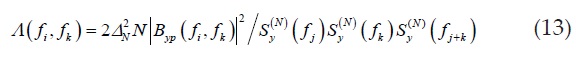 where B(N)(fj,fk) is an estimator of the input bispectrum, B(fj,fk), for a sample size of N, Bn(fj,fk) is the bispectrum of the noise assuming that we have a noise-only sample at the matched filter output; Sy(N) is the estimated power spectrum density comprising the samples of the preamble and additive noise at the frequencies {fk}. ΔN is the bandwidth of the bispectrum. Using the approximation ΔN ≅ 1/√N Hinich and Wilson (1990) give a sampled bispectrum in the form of independent random variables defined at the bifrequency pair (fi,fk) and then CH(fj,fk) can be considered as a chi-square variable with 2 degrees of freedom.