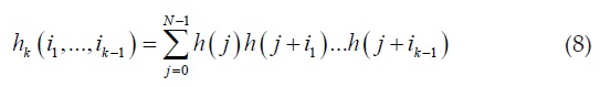 The cumulant analysis of the filtered random processes was achieved in (Giannakis and Tsatsanis, 1990). The ouput of the random process needs to compute the kth-order correlation of the impulse filter response, which is defined by