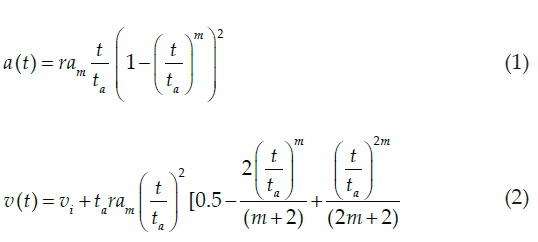 Where r and m are model parameters, αm is the maximum acceleration, and tα is the acceleration time, i.e. the time required to reach the final speed. The initial vi and final speed vf are employed to approximate the acceleration time with Equation 3.