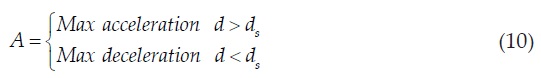 S is the aggressiveness of the acceleration and deceleration changes, being a positive value. If 0 ≤ S < 1 make it smoother, and 1 ≤ S < ∞ make it less smoother, S is selected as presented in Equation 11, allows reacting at sudden changes of the leader velocities.