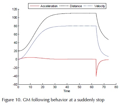 For simulation purposes, in the particular case of car following situations, i.e. when the behavior of a car is related to a car right in front, is required to control the acceleration of both cars using a model for each one, an example from the simulations of a car following situation can be observed in Figure 1.