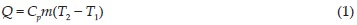 donde Cp es la constante del calor específico del agua y m es la masa del volumen de agua.