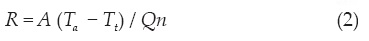Dado que el material y los espesores de cada tinaco son diferentes, y en aras de obtener información que explique dicho comportamiento, utilizando las mediciones obtenidas durante la noche se calculó la resistencia térmica de cada tinaco mediante la fórmula.