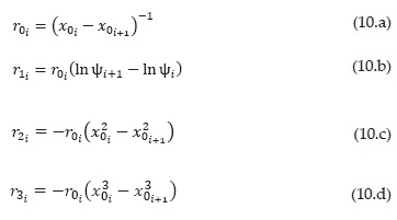 It is assumed that ψ (·) is equal to the corresponding function ψ0i (·), i = {1, 2, 3}, in the ith segment. The values of coefficients c2i and c3i, obtained from a fit for each interval [x0i, x0i+1], are shown in Table 1; meanwhile the coefficients c0i and c1i, are specified in terms of c2i and c3i, by means of the following expressions