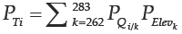 Donde P Ti es la probabilidad conjunta de excedencia asociada al gasto máximo de descarga Q i ; P Elev es la probabilidad de que el tránsito se inicie en la elevación k, y P Qi/k la probabilidad de que el gasto máximo de descarga sea mayor o igual que Q i dada la elevación inicial k.