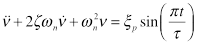 Considerando la nomenclatura definida por Harris y Piersol (2002), la excitación ξp es genérica y puede representar diferentes situaciones como desplazamiento por la base, aceleración, fuerza, etcétera. De esta forma, la respuesta v es también genérica y depende del tipo de entrada. En este caso, el sistema está sujeto a una excitación impulsiva de aceleración aplicada a la base de tipo medio seno con amplitud máxima ξp y duración τ y la respuesta v representa la aceleración absoluta de la masa. La función de medio seno es una función impulso típicamente usada para la predicción de respuesta de impacto. La Figura 1b presenta un ejemplo gráfico de la función de medio seno para diferentes valores de la duración relativa. Para establecer la duración relativa del impulso se define una relación de periodos, es decir, se compara la duración del impacto con el periodo natural fundamental del sistema aislante τ/T.