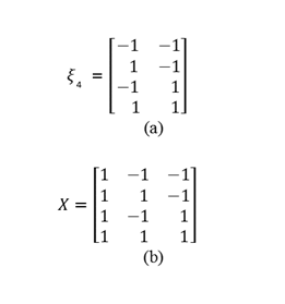 Los principios de la D-optimalidad se remontan a Wald (1943) donde se establece el criterio de maximización del determinante de la matriz de información. Más tarde Kiefer y Wolfovitz (1960) le darán el nombre de D-optimalidad. El diseño D-óptimo se define como aquel que minimiza la region de confianza conjunta del vector que contiene a los estimadores de los coeficientes de regresión. Triefenbach (2008) menciona que para la formación de un diseño óptimo se necesita seleccionar la matriz que contiene los puntos candidatos a pertenecer al diseño óptimo, esta matriz se conoce como matriz de puntos candidatos, contiene N renglones y se denota con el símbolo ξ N , (Figura 4, sección a). La matriz de diseño X contiene n filas con p coeficientes (Figura 4, sección b).