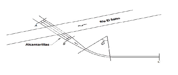 Las alcantarillas sirven para cruzar por debajo a un río (El Salto). En particular, la estructura de control se localiza aguas abajo de la confluencia de dos canales (Figura 1); uno de ellos corresponde al portal de salida del Túnel Emisor Central (TEC), mientras que el otro recibe el caudal que sale del Túnel Emisor Oriente (TEO, inaugurado en diciembre de 2019).