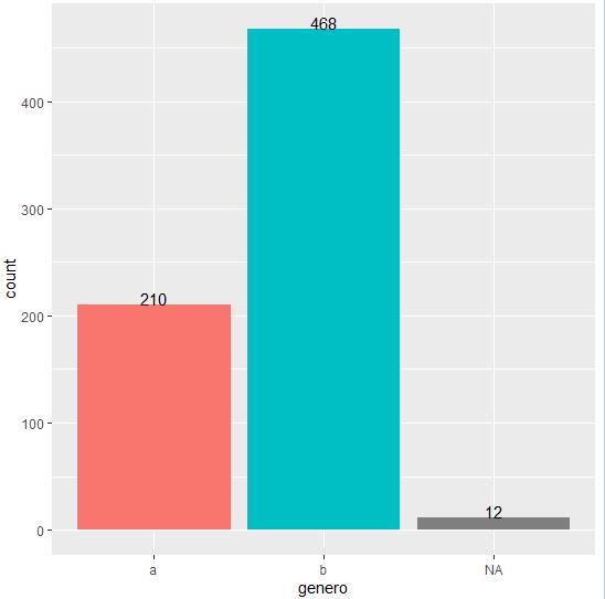 Género Se imputará con la moda (valor “b”) los 12 registros con valor faltante