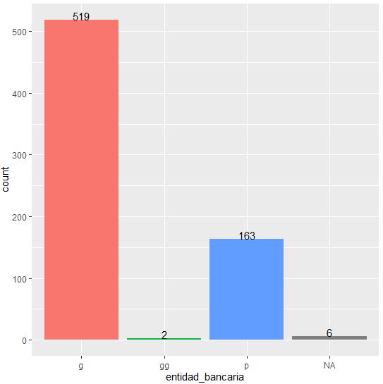 Entidad bancaria Se imputará con la moda (valor “g”) los 6 registros con valor faltante