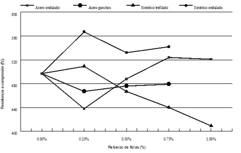 A partir de los datos obtenidos en las investigaciones realizadas por Altoubat et al. (2008), Bolat et al. (2014), Köksal et al. (2013), Krishna & Rao (2014), Mello et al. (2014), Shinde et al. (2015), Sinha et al. (2014) y Yazdanbakhsh et al. (2015) se puede observar lo establecido por los reglamentos del Instituto Americano del dad de deformación y 167 % resistencia a flexión. Por otro lado, Shinde et al. (2015) determinaron que con el uso de 25 % de fibra sintética más 75 % de fibra de acero en un HFRC se obtiene un mejor comportamiento a flexión de la muestra de concreto debido a que esta combinación de fibras ayuda a reducir fisuras (micro y macro) que sufre el concreto hidráulico. Huang & Zhao (1995) obtuvieron incrementos en la resistencia a compresión del concreto reforzado con fibras de acero a medida que incrementaban el porcentaje de fibra, sin embargo, documentaron que a partir de 2.0 % del volumen de FRC, la resistencia a compresión disminuye, debido a la baja trabajabilidad que adquiere la mezcla. Por otra parte, en la reglamentación ACI (1999) y PCA (2004), así como también en el artículo publicado por Köksal et al. (2013), se establece que la presencia de fibras en la mezcla de concreto no afecta considerablemente la resistencia a compresión de esta. Además, comentan que la falla presentada por la mezcla del FRC es menos frágil que la falla presentada por el concreto simple debido a que la fibra mantiene unida a la mezcla aun después de haber fallado.
