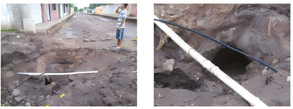 At the intersection of Miguel Hidalgo St. and Juan de la Barrera St., in the town of Los Angeles, the cavity shown in Figure 5 was identified. Upon inspecting the cavity it was found that it is not regular; on the surface, it had a diameter of approximately 0.80 m, with a visible diameter at the bottom of approximately 2.00 m and 2.80 m in depth.