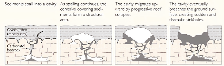 Those caused by the gradual dissolution of the existing rock beneath a soil stratum.