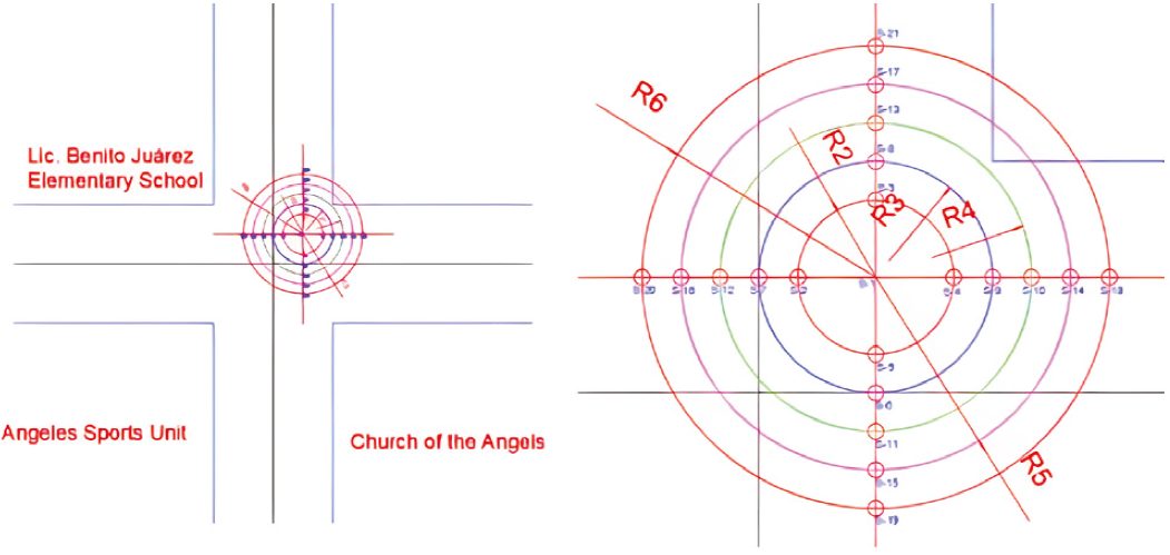 To study the sinkhole in the town of Los Angeles where a cavity appeared, and evaluate the possibility of suffusion or the presence of caverns, and their collapse at the intersection of Juan de la Barrera St. and Miguel Hidalgo St., the investigation was carried out in 6 stages, as described below: