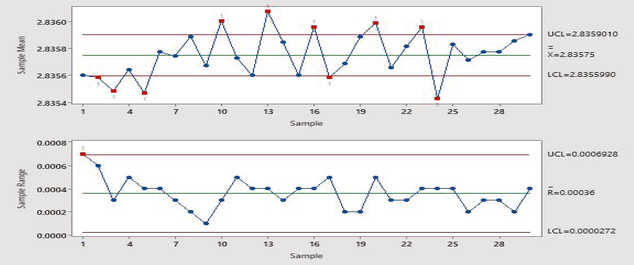 Table 2: Improvement result summary after the proposed implementation for the bushing process (x-R chart results)