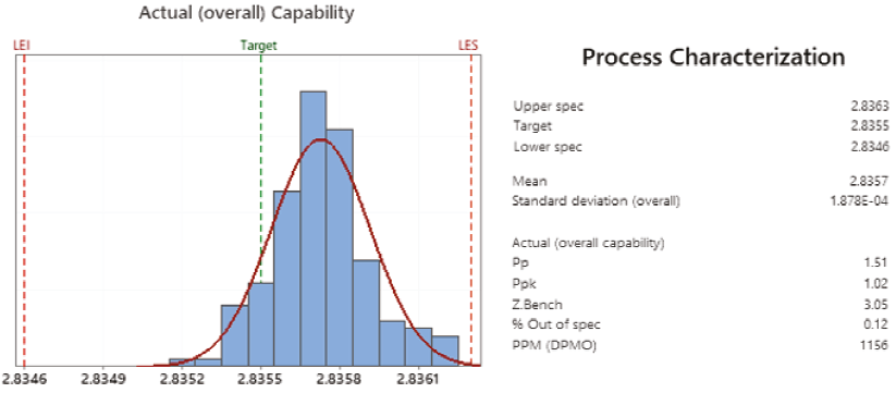 | Process mean (in) | 2.83575 | 2.835727 | 0.00081 |