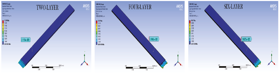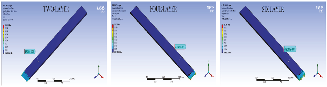 Now, by solving a four-layer material, results seemed to be ideal, it can be observed that the similarity of the strain values were extremely close, by performing a relation between them, 99 % of precision was obtained. This configuration surely withstands at least three cycles.