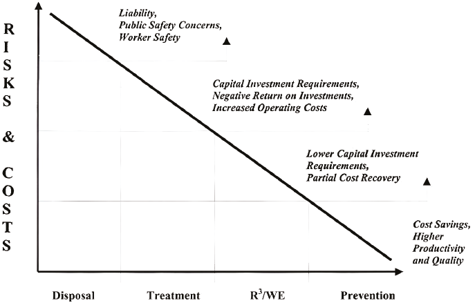 Waste management strategies are inherently linked to the costs and risks of their implementation.