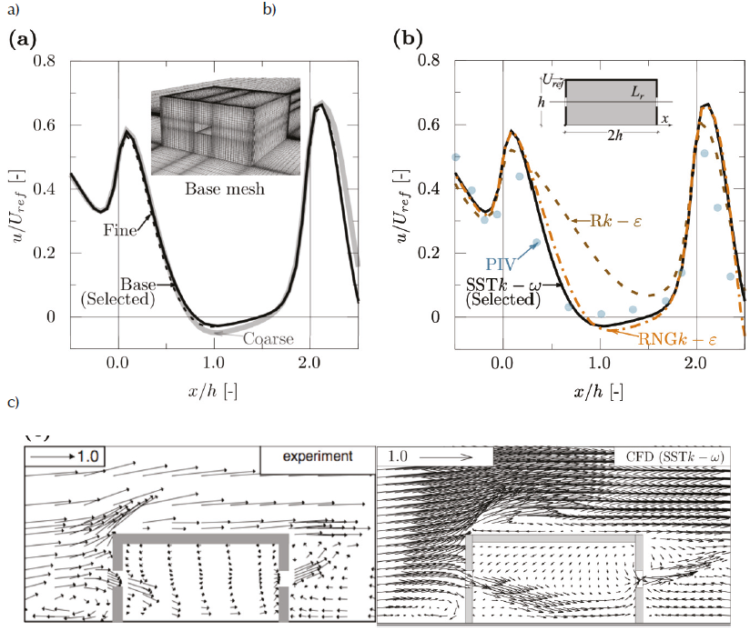 Figure 3 Wind driven cross ventilation case for validation: a) grid